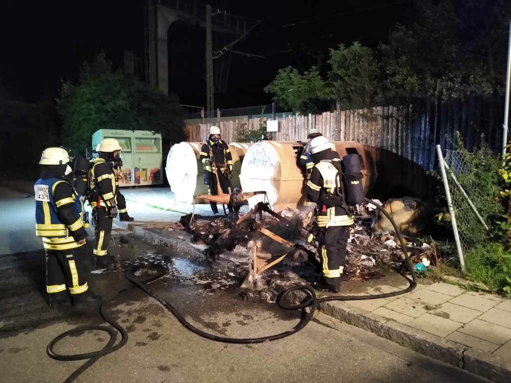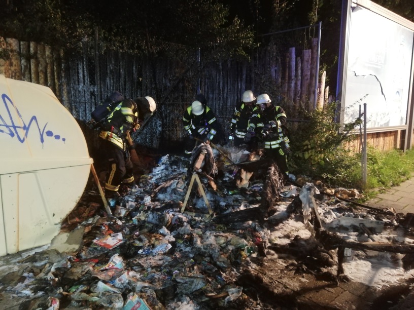 Die Feuerwehr Haar wurde zu brennenden Containern einer Wertstoffinsel in der Blumenstraße alarmiert.