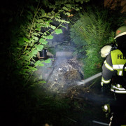 Vor Ort fanden die Einsatzkräfte einen brennenden Komposthaufen von etwa 1m auf 1m vor, bei dem bereits die Nachbarn mit dem Gartenschlauch Löschversuche starteten. Mit einem C-Hohlstrahlrohr löschte ein Trupp unter Atemschutz das Feuer, das bereits auf die angrenzende Hecke überzugreifen begann.