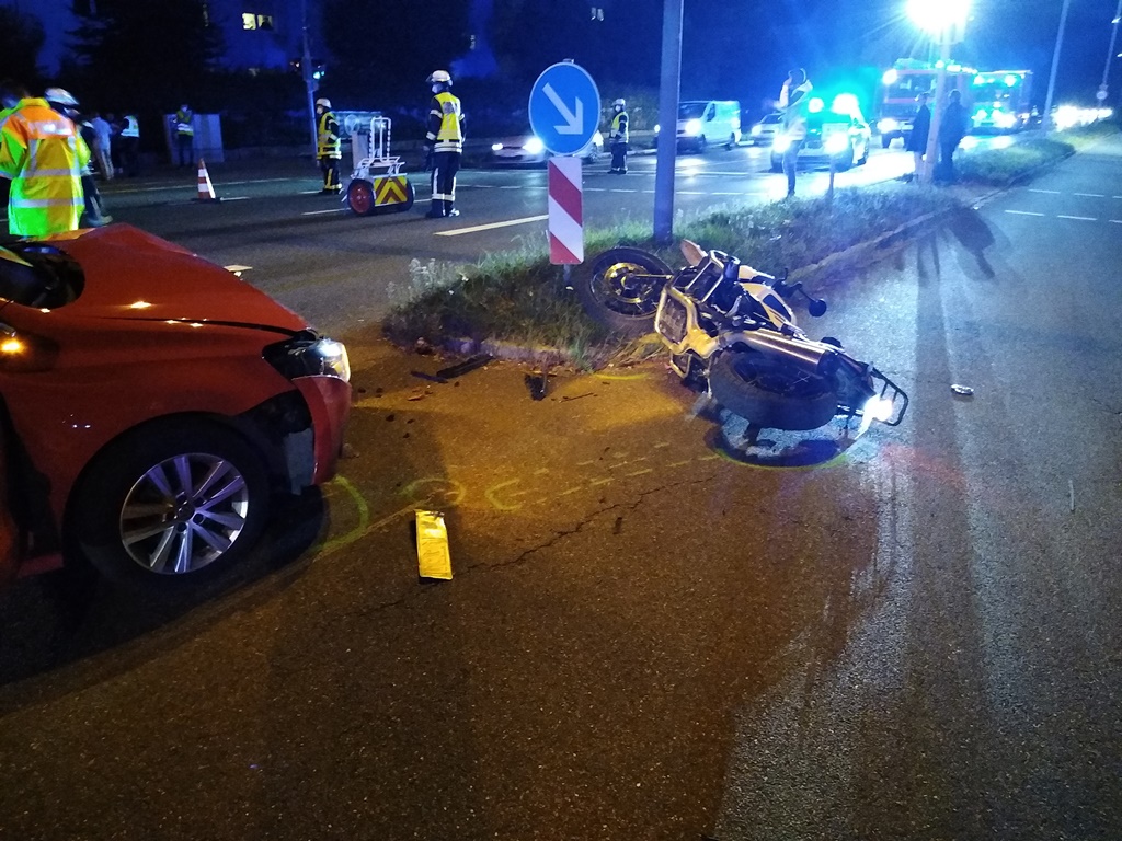 Dort kam es zu einem Unfall zwischen einem Kraftrad und einem PKW, bei dem sich der Kraftfahradfahrer verletzte und bei Eintreffen der Feuerwehr bereits durch den Rettungsdienst und den First Responder aus Feldkirchen versorgt wurde.