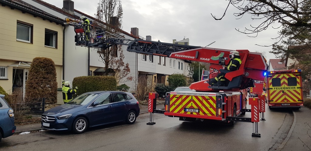 Die Feuerwehr Haar wurde zur Unterstützung des Rettungsdienstes bei der Rettung einer Person mittels der Drehleiter in die Dr.-Mach-Straße alarmiert.