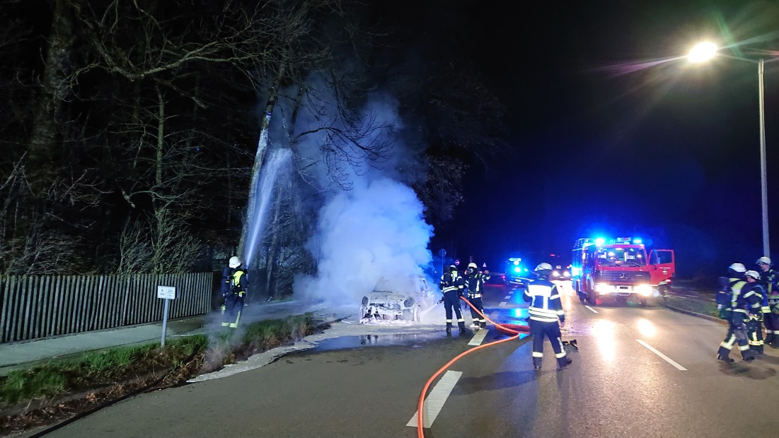 Die Feuerwehr haar wurde zu einem PKW-Brand in die Sudentenstraße / Ecke Wasserburger Landstraße alarmiert.