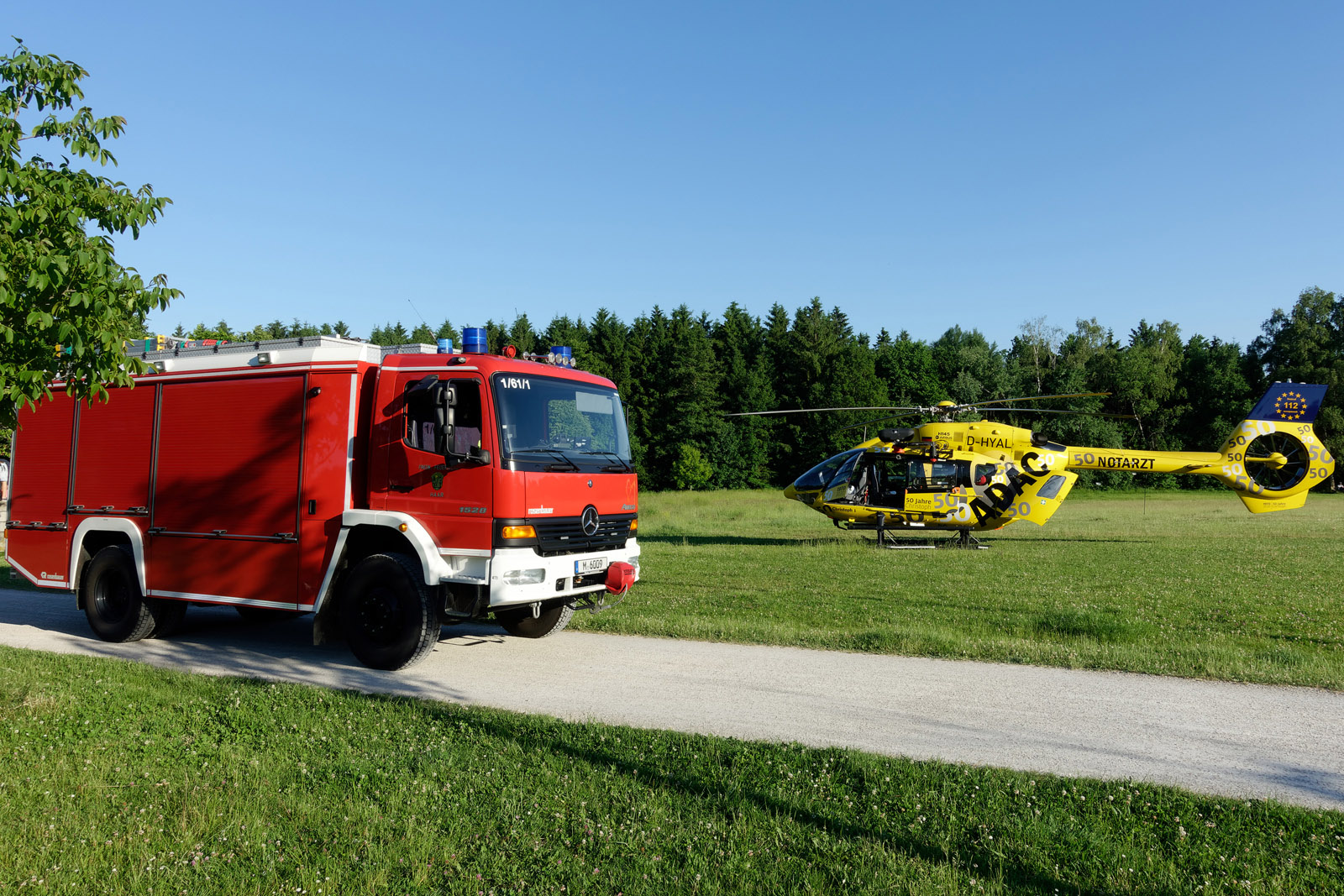 Nachdem kein bodengebundener Notarzt zur Verfügung stand, wurde der Christoph 1 nach Haar ins Jagdfeld alarmiert. Er landete am Wieselweg und die Feuerwehr übernahm den Transport des Notarztes zur Einsatzstelle in den Jagdfeldring. Weitere Kräfte blieben zur Absicherung beim Rettungshubschrauber am Wieselweg.