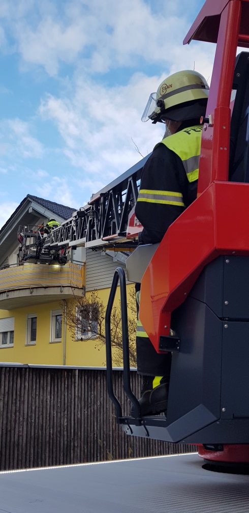 Ein Patient musste mit der Drehleiter aus dem 2. Obergeschoss zu Boden gebracht werden, da das Treppenhaus nicht die notwendige Breite aufwies. Anschließend konnte er an den Rettungsdienst übergeben werden.