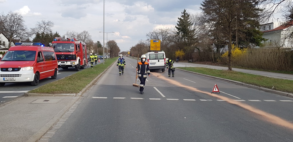Die Feuerwehr Haar wurde für eine Fahrbahnreinigung zu einem Verkehrsunfall auf die Wasserburger Straße alarmiert.