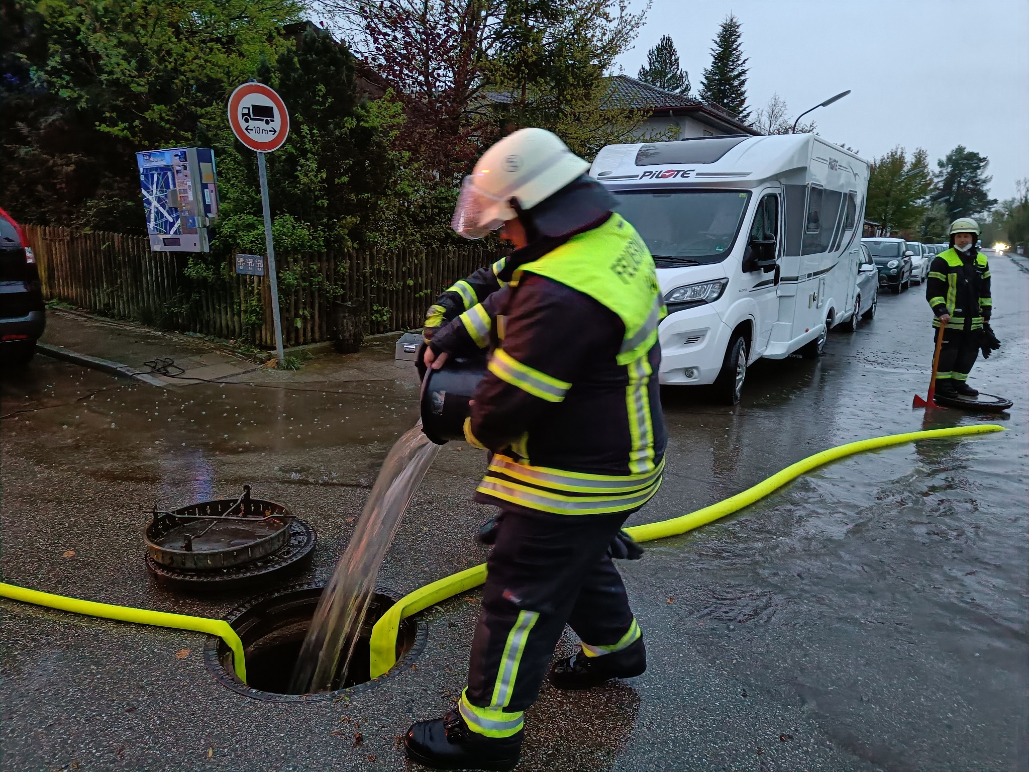 Die Feuerwehr Haar wurde nach einem Unwetter mit Starkregen in die untere Parkstraße gerufen.