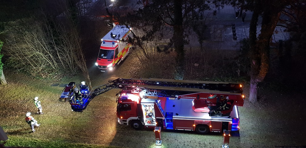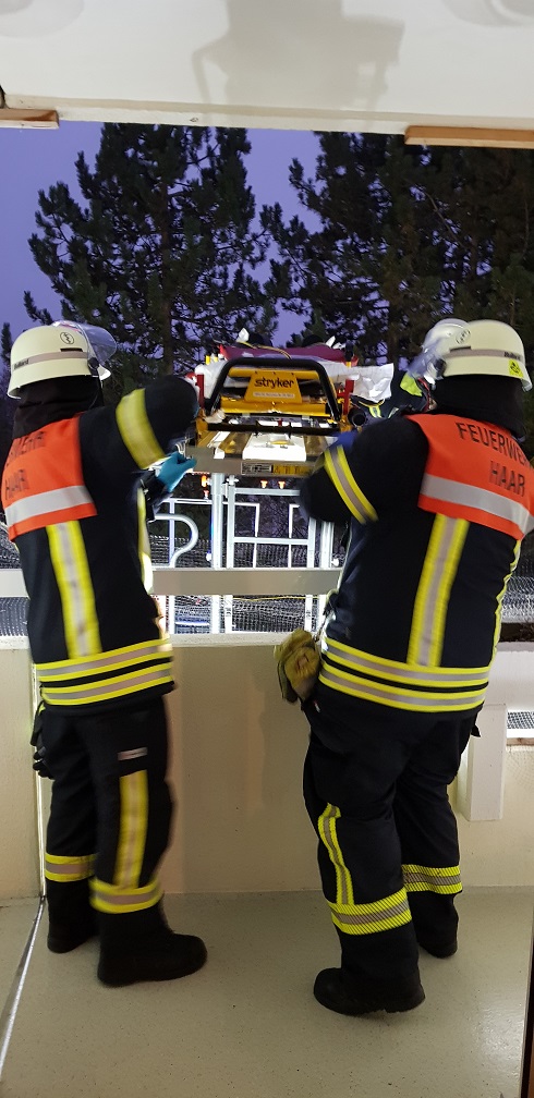 Die Feuerwehr Haar wurde zur Unterstützung des Rettungsdienstes bei der Rettung einer Person mittels der Drehleiter in den Jagdfeldring alarmiert.