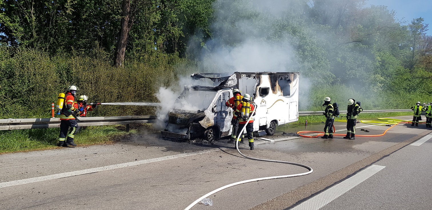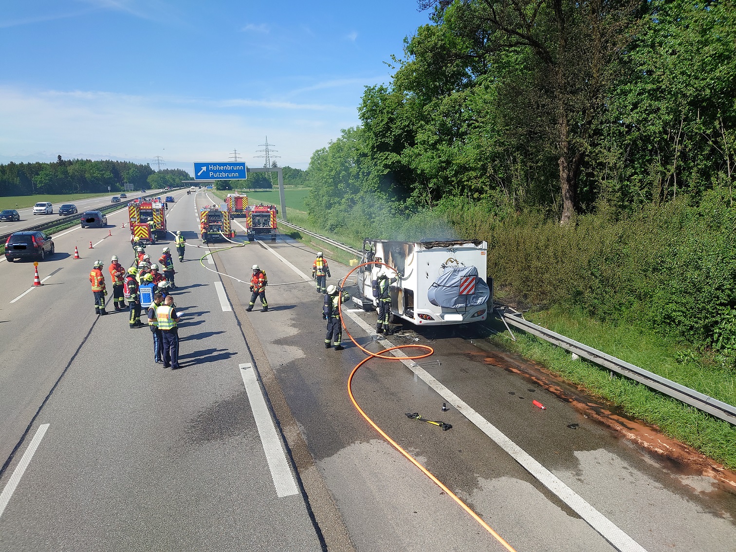 Die Feuerwehr Haar wurde zu einem brennenden Wohnmobil auf die A99 alarmiert.