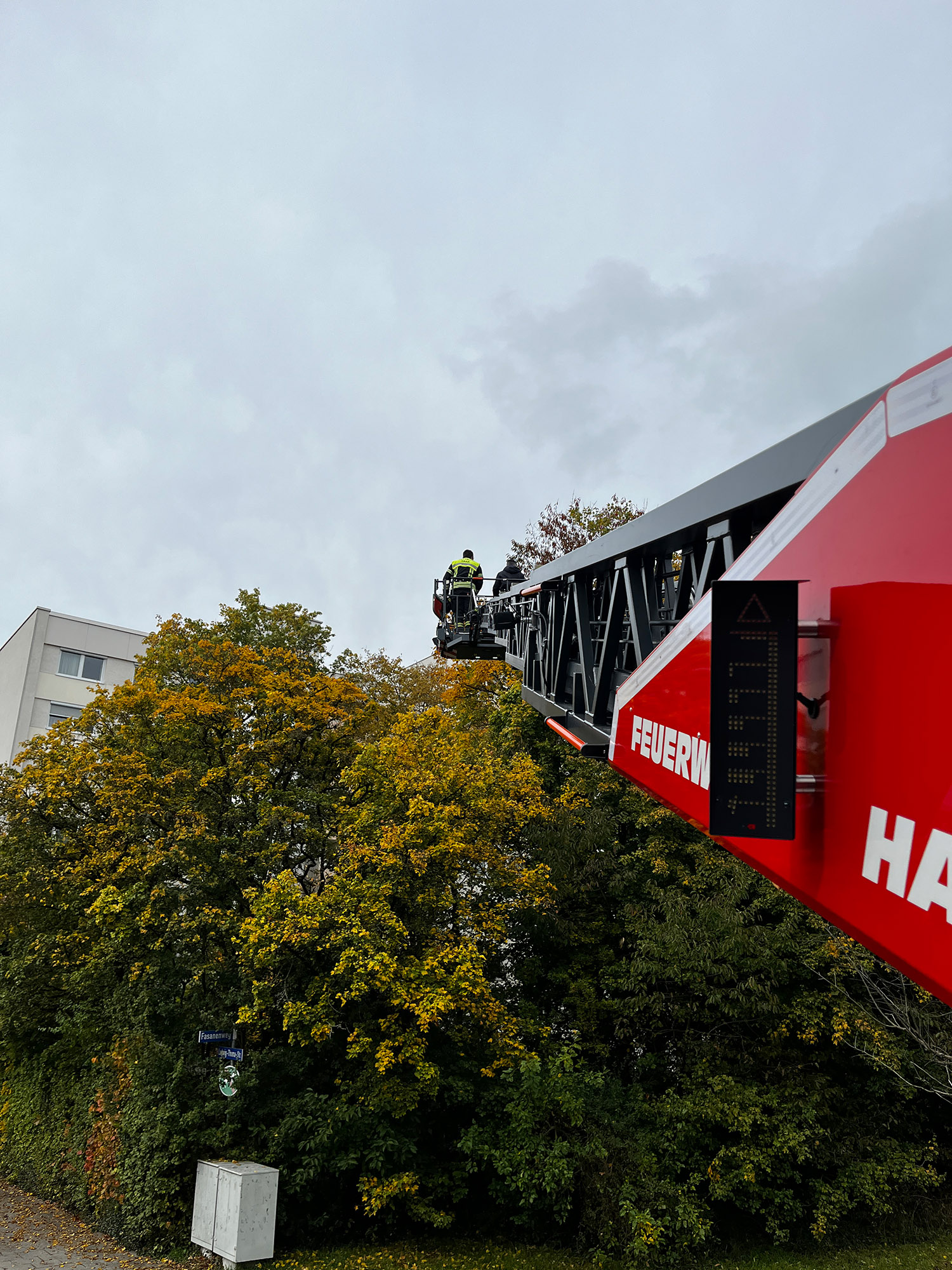 Die Feuerwehr Haar wurde zu einer Katzenrettung in die Ludwig-Thoma-Straße alarmiert.