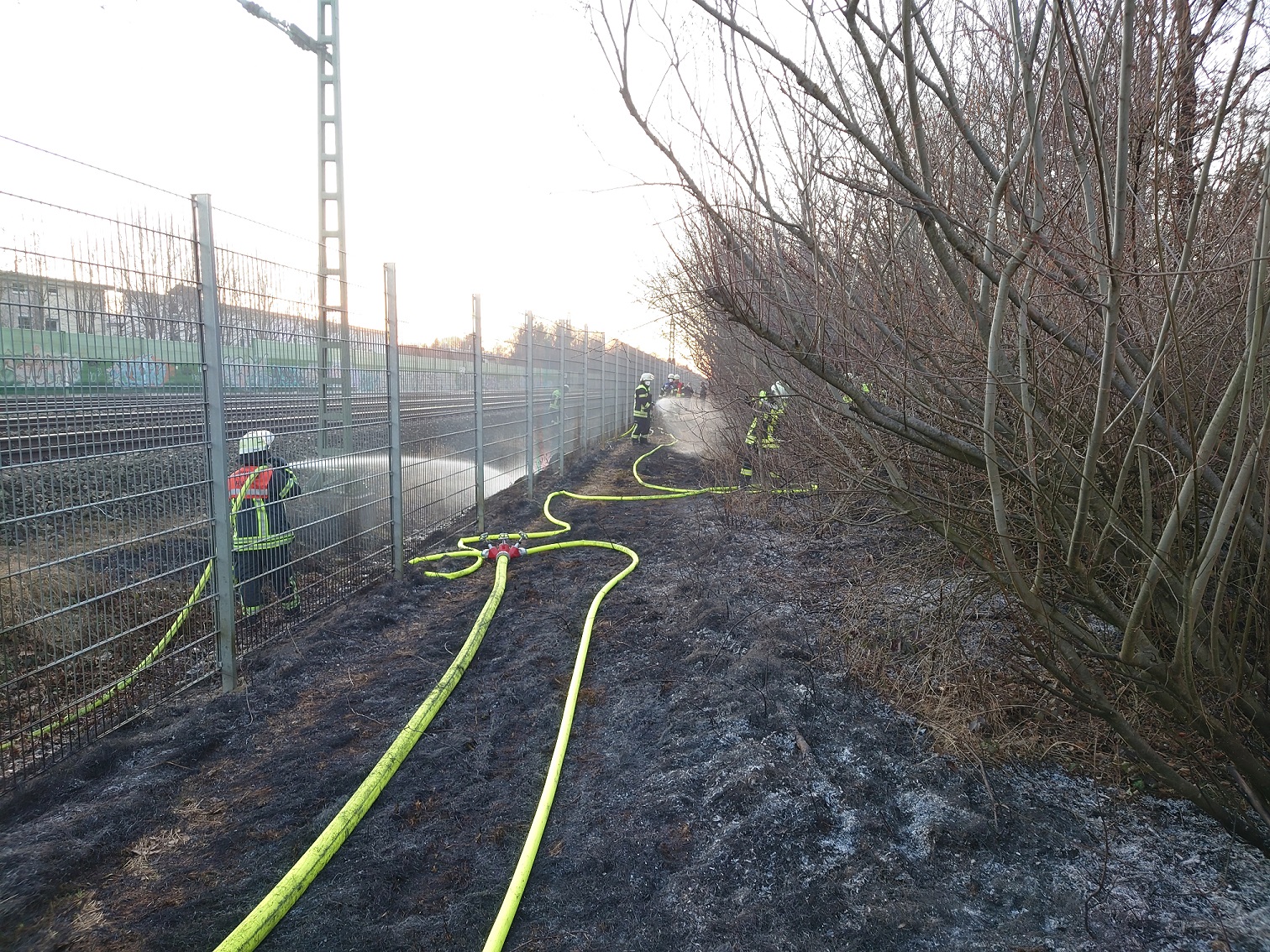 Die Feuerwehr Haar wurde an die Bahnstrecke zu einem Brand des Bahndamms alarmiert.