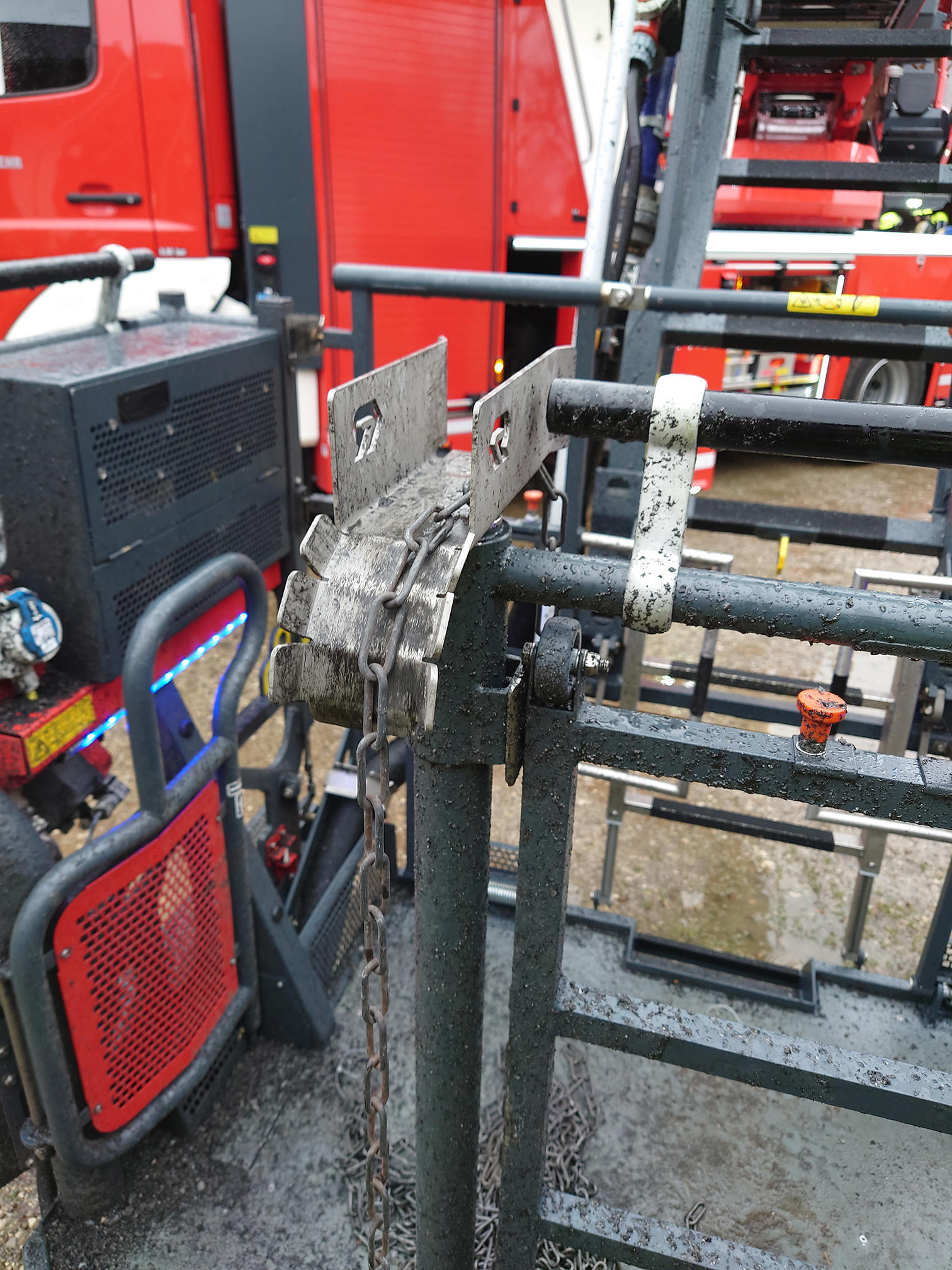 Die Feuerwehr Putzbrunn forderte die Drehleiter der Feuerwehr Haar an, um über das Dach den Kamin mit speziellem Kehrwerkzeug zu reinigen, dass die Abgase wieder nach oben entweichen können. Ein Trupp unter schwerem Atemschutz setzte das sogenannte Kaminkehrerwerkzeug vom Drehleiterkorb aus ein und reinigte so den Schornstein. Zusätzlich rückte der zuständige Kaminkehrer an und unterstützte im Erdgeschoss bei den Arbeiten.