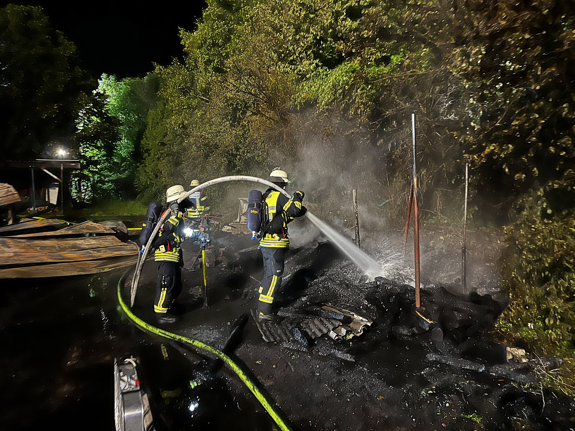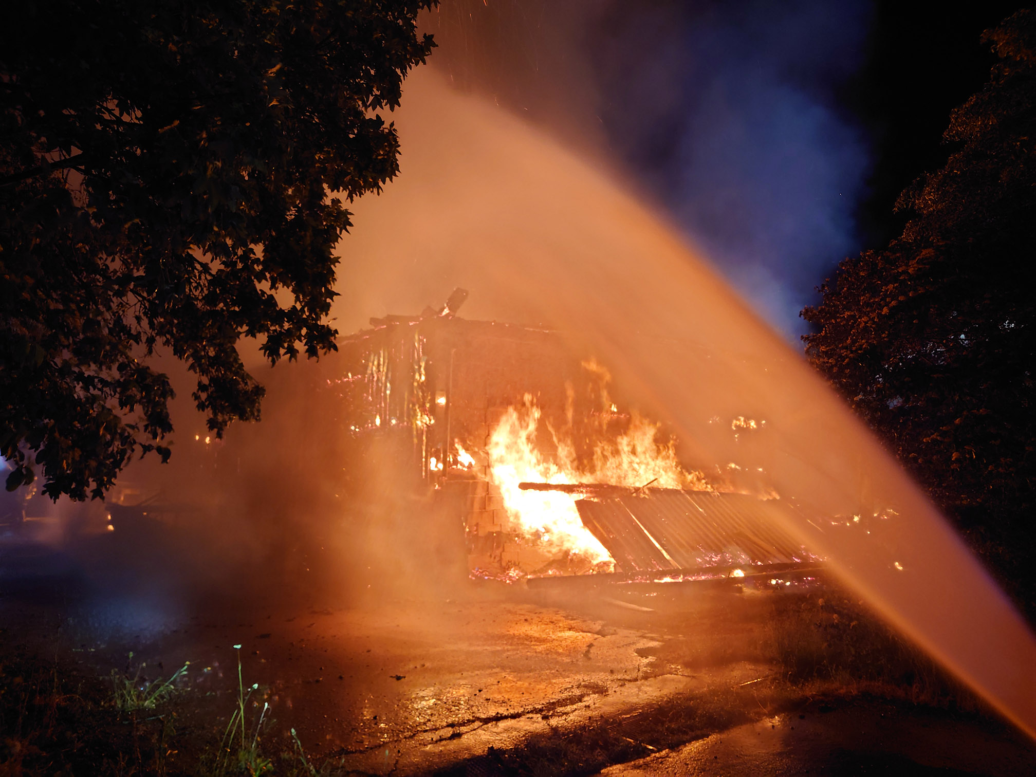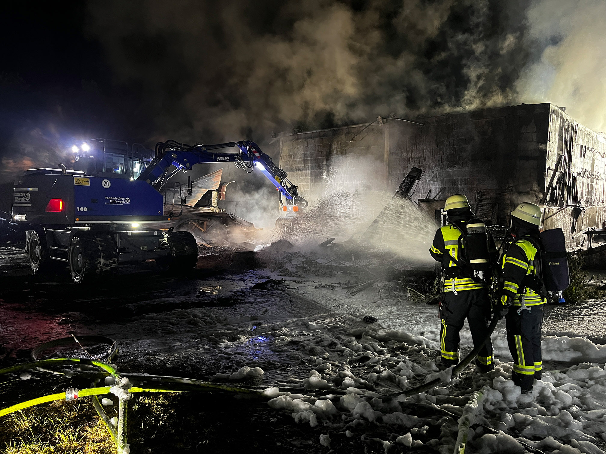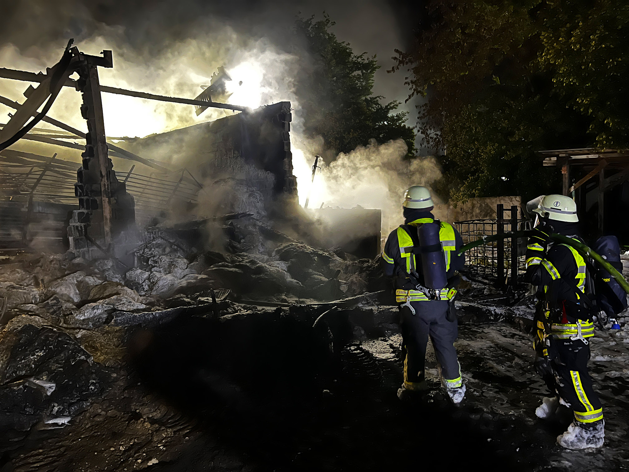 Das Gebäude brannte vollkommen nieder und musste zum Ablöschen aller Glutnester mit einem Bagger des THW komplett eingerissen werden.