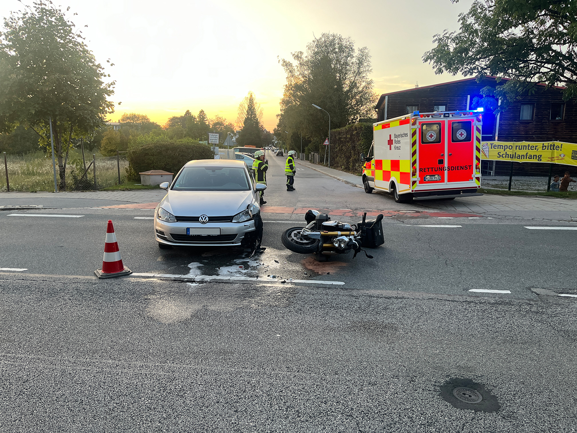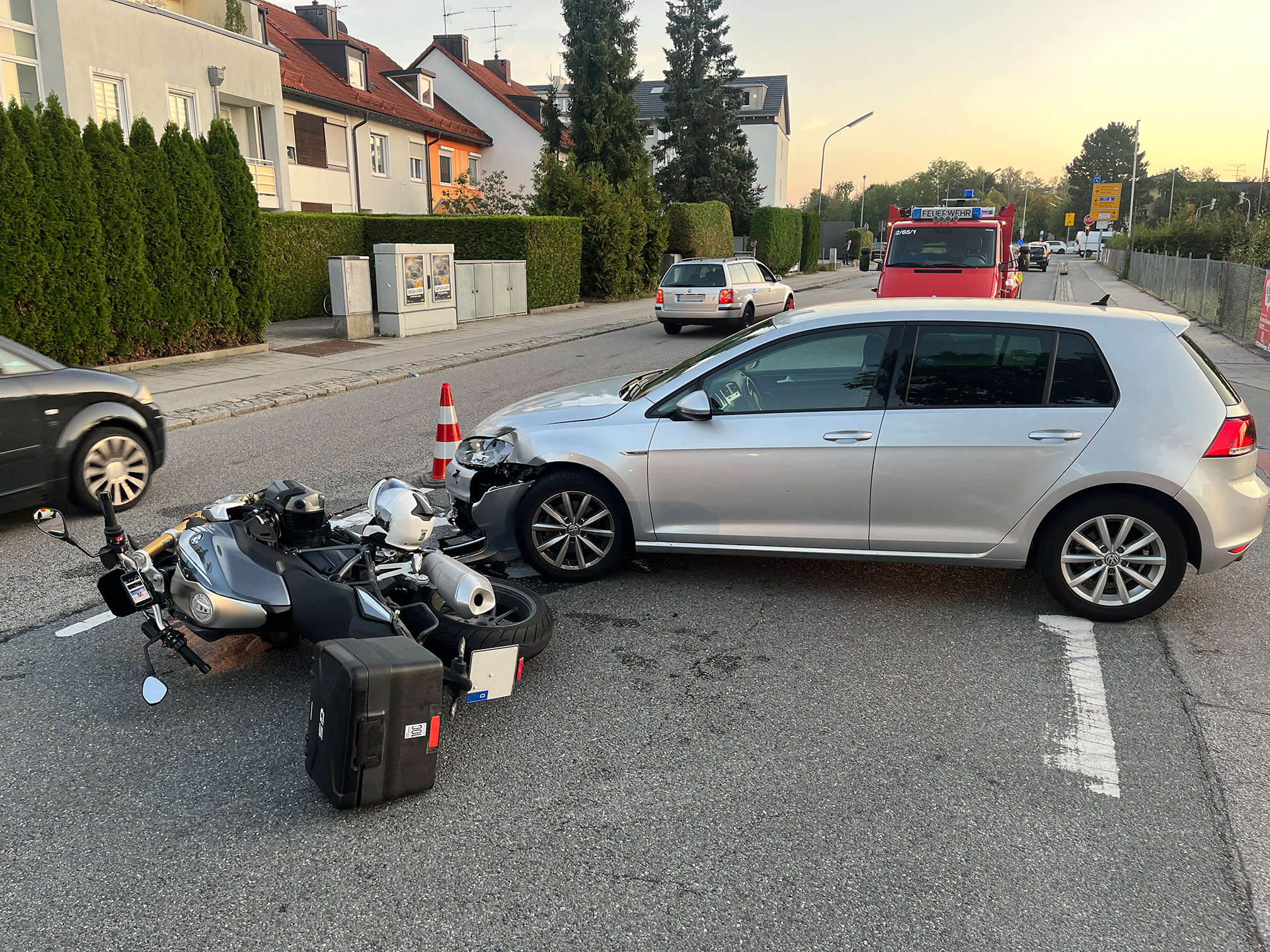 Ein PKW war mit einem Motorrad zusammengestoßen, der Motorradfahrer war dabei gestürzt und musste vom Rettungsdienst versorgt werden. Die Feuerwehr Haar übernahm die Absicherung der Einsatzstelle für die Unfallaufnahme. Hier musste der Verkehr wechselseitig vorbei geleitet werden. Nach Beendigung der Unfallaufnahme durch die Polizei konnte die Straße gereinigt, die Fahrzeug zur Seite verbracht und für den Verkehr wieder frei gegeben werden. Im Anschluss rückte die Feuerwehr wieder ab.
