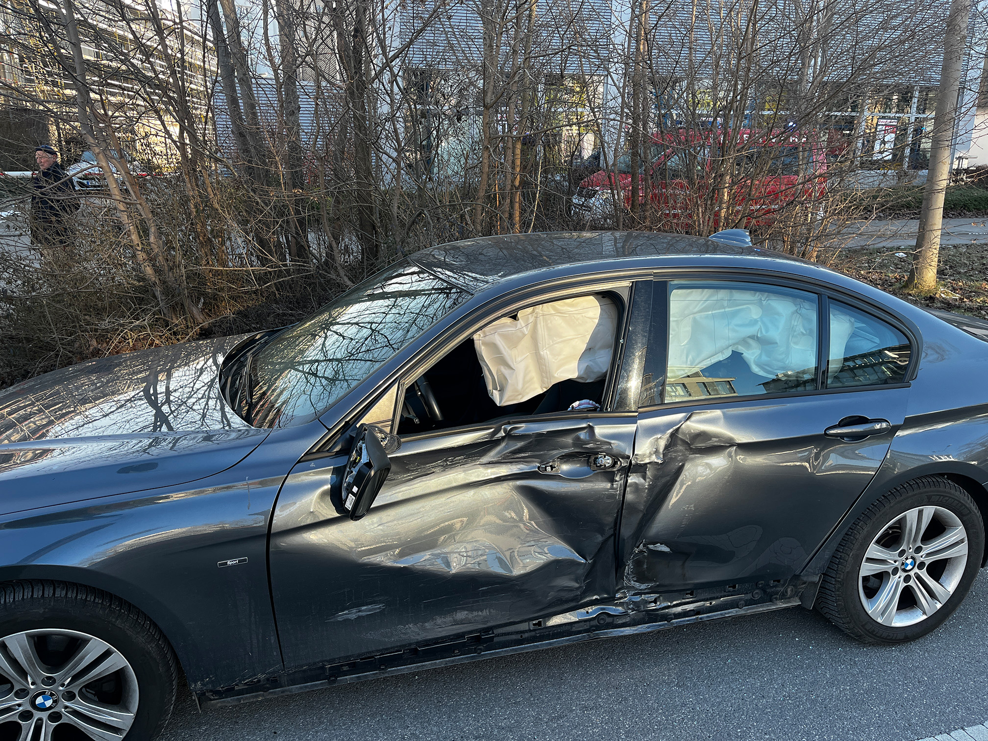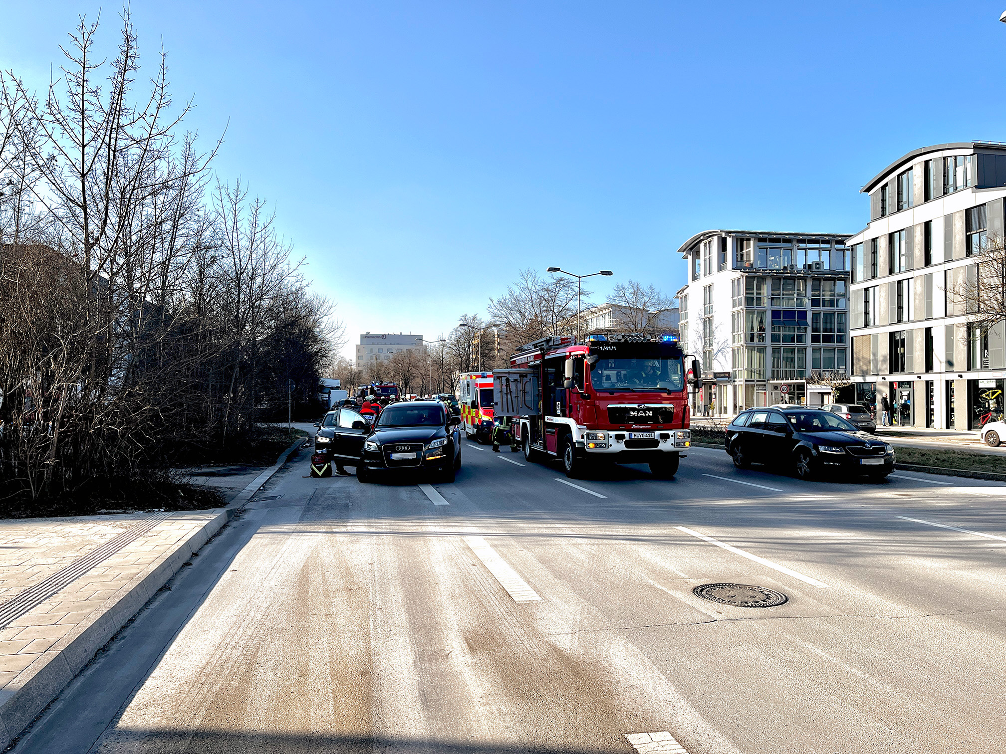 Die Feuerwehr Haar sicherte die Einsatzstelle während der Unfallaufnahme durch die Polizei ab und reinigte die Straße von den Trümmerteilen der beiden Fahrzeuge.