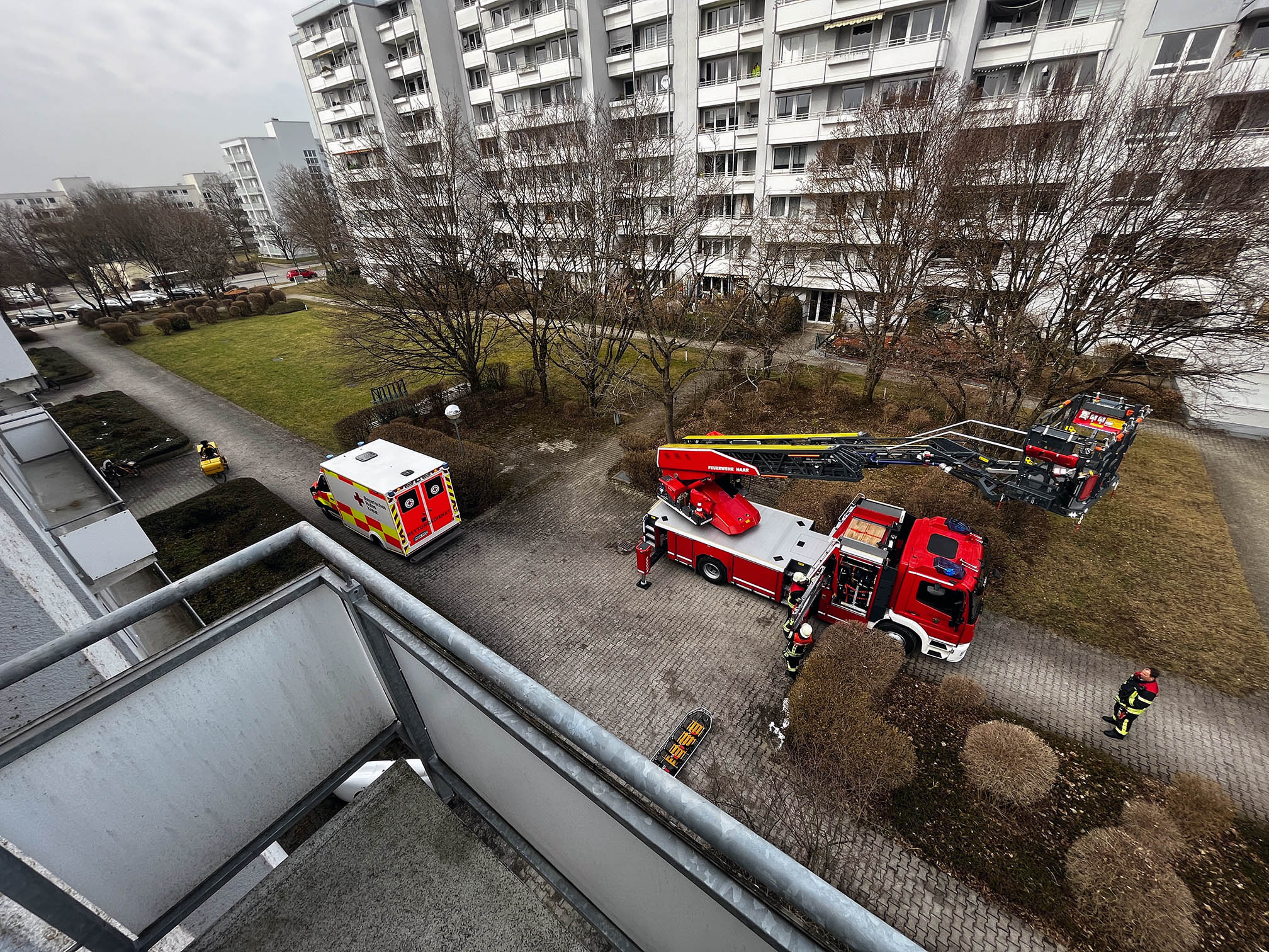 Der Rettungsdienst forderte die Drehleiter der Feuerwehr Haar Am See nach.