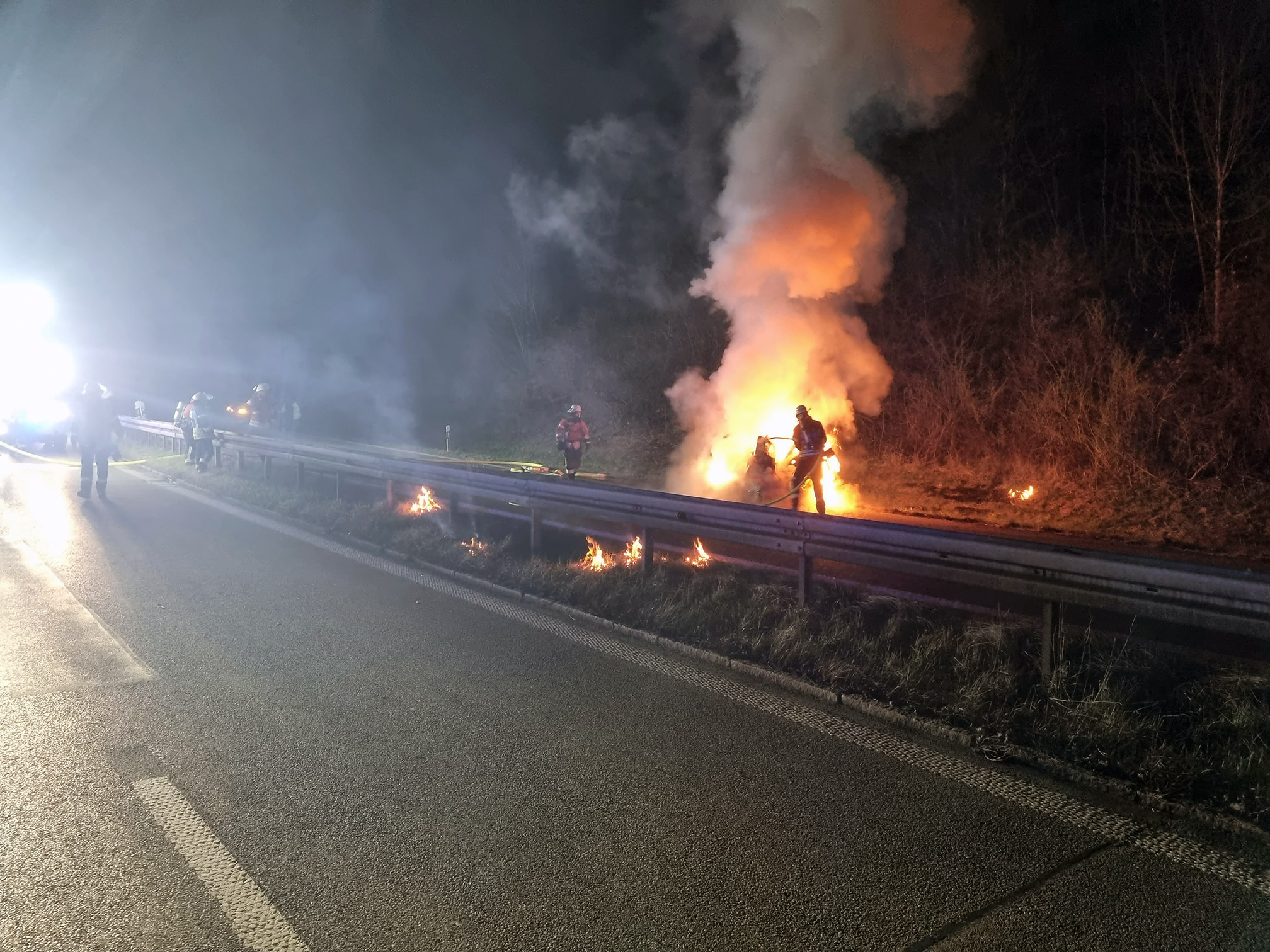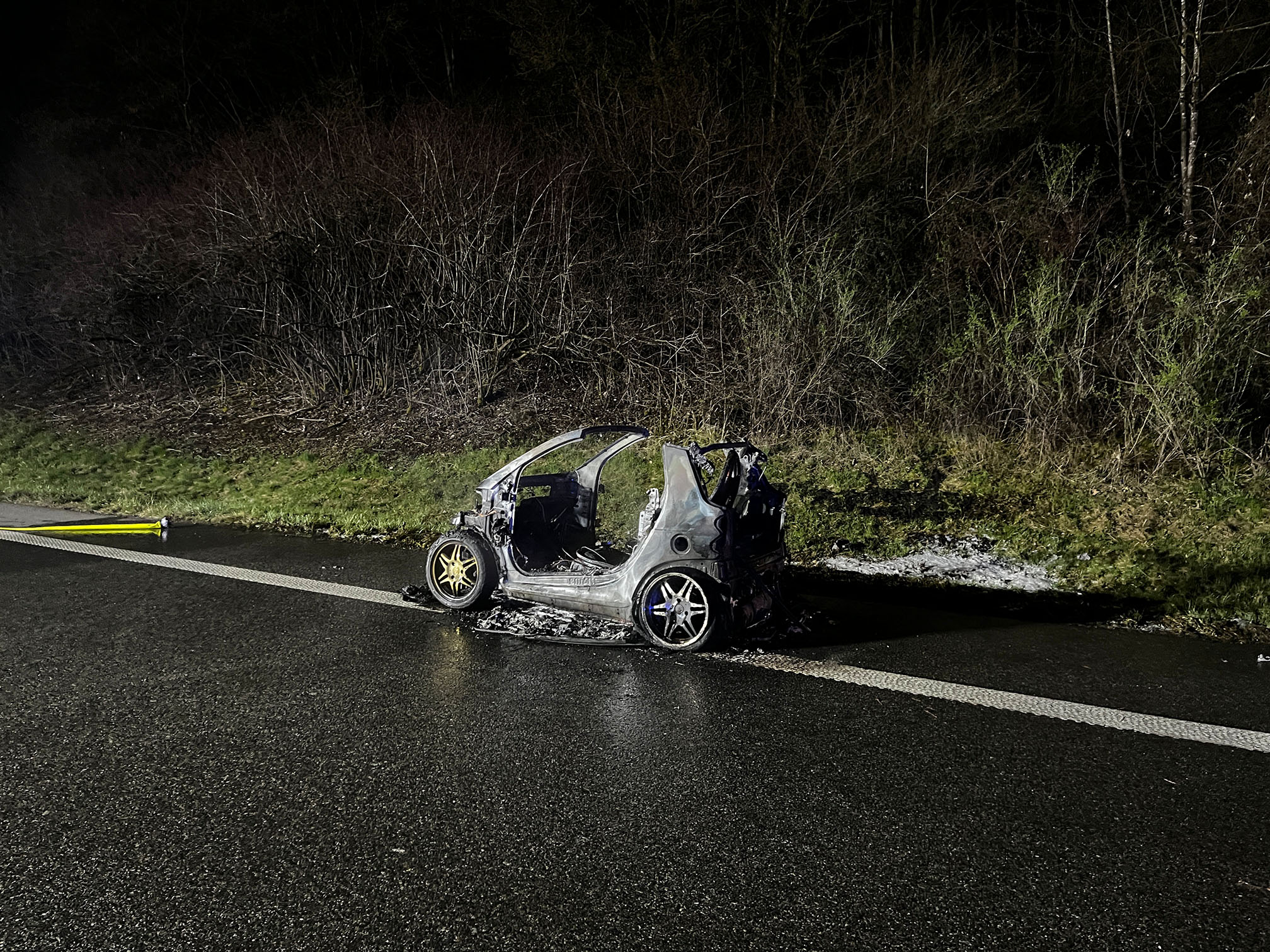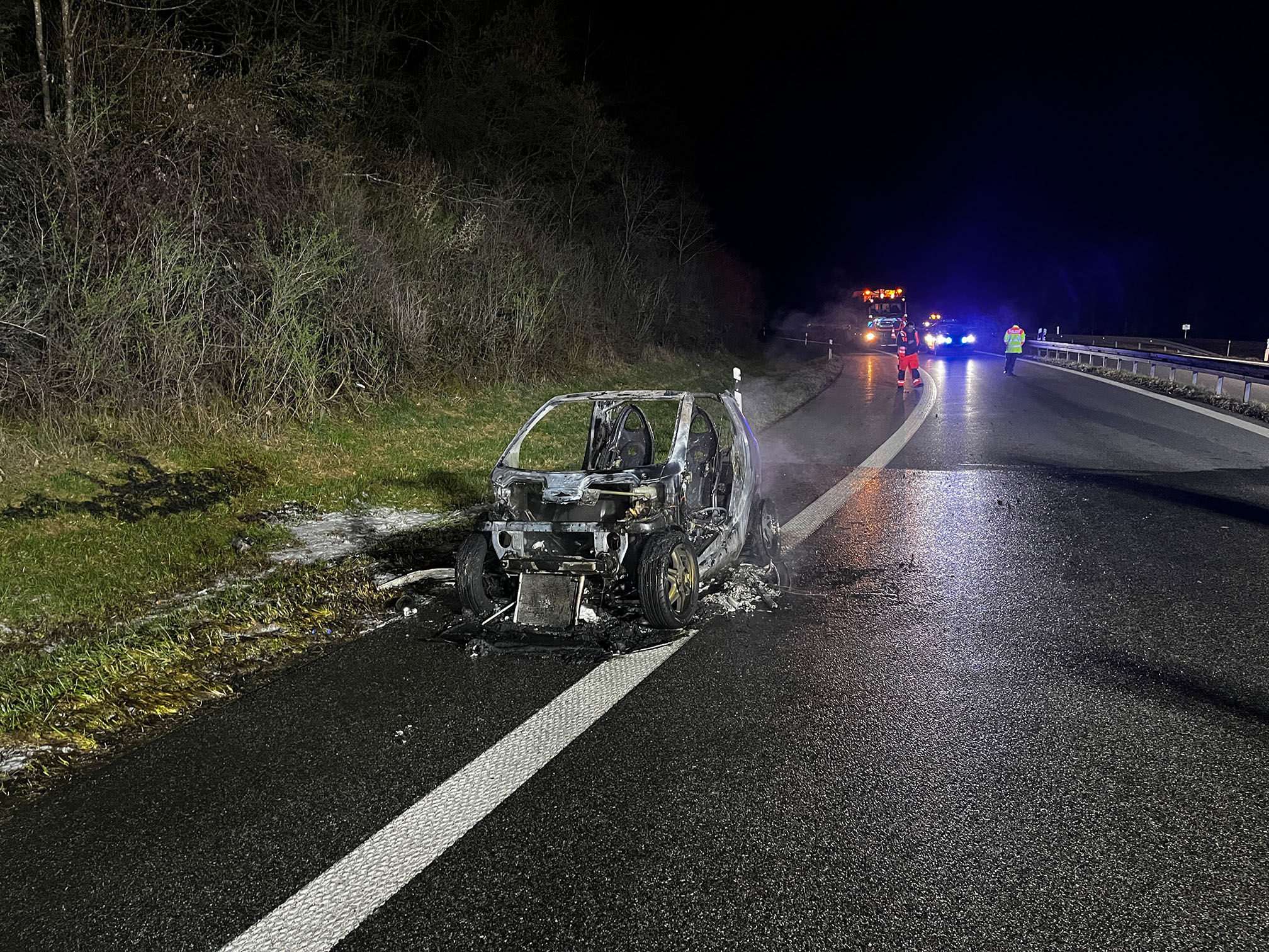 Die Insassen konnten sich noch rechtzeitig aus ihrem Fahrzeug retten und blieben unverletzt. Nach dem Abtransport des Fahrzeugs konnten alle Fahrspuren wieder frei gegeben werden und die Feuerwehren abrücken.