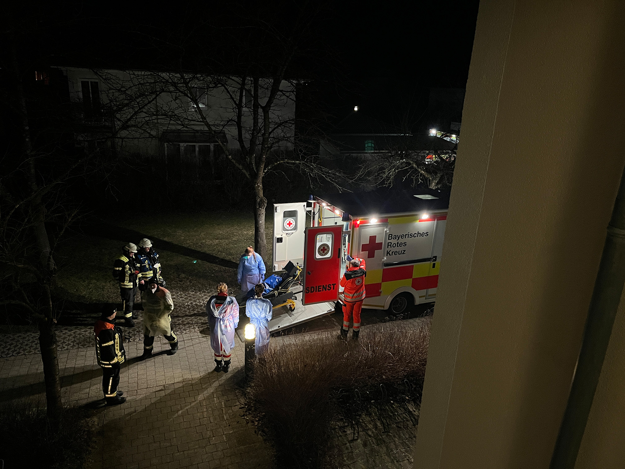 Der Rettungsdienst forderte die Feuerwehr Haar zur Tragehilfe in die Karl-Hackl-Straße nach.
