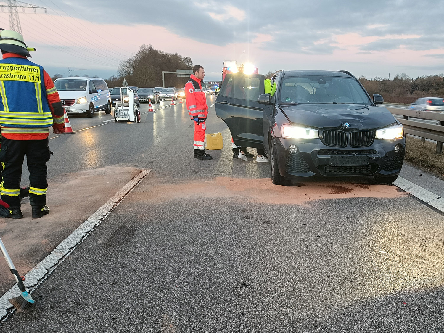 Kurz vor der Anschlussstelle Hohenbrunn waren mehrere PKW aufeinander gefahren. Dabei wurden zum Glück niemand verletzt. Die Kräfte der Feuerwehr sicherten die Einsatzstelle gegen den fließenden Verkehr ab, nahmen Betriebsstoffe auf und konnten nach der Räumung der Unfallstelle an die Polizei übergeben und wieder abrücken.