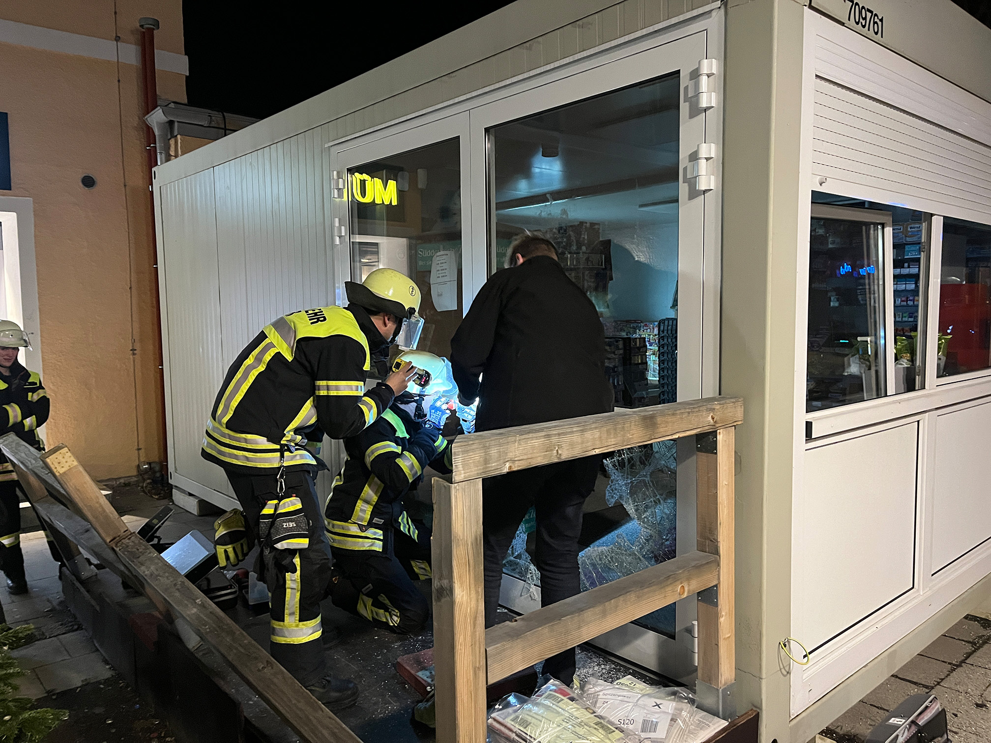 Die Polizei forderte die Feuerwehr an den Bahnhof Haar zum Sichern eines Ladens nach einer Straftat nach.