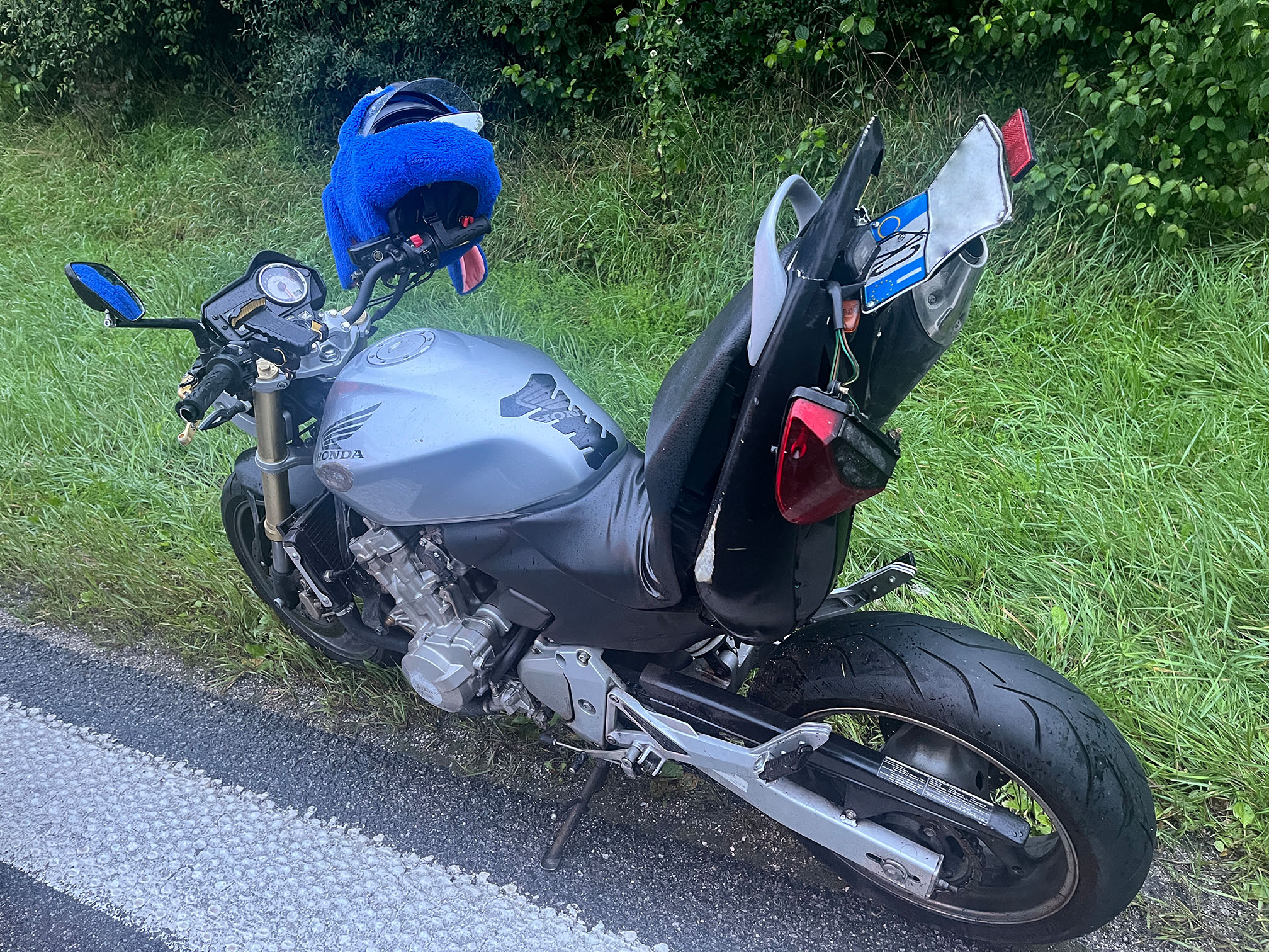Der Fahrer des PKW hatte die Kontrolle über sein Fahrzeug verloren und war in die Leitplanke gerutscht. Er kam rechts auf der Fahrspur zum Stehen. Kurz darauf stürzte ein Motorradfahrer und prallte auf den stehenden PKW.