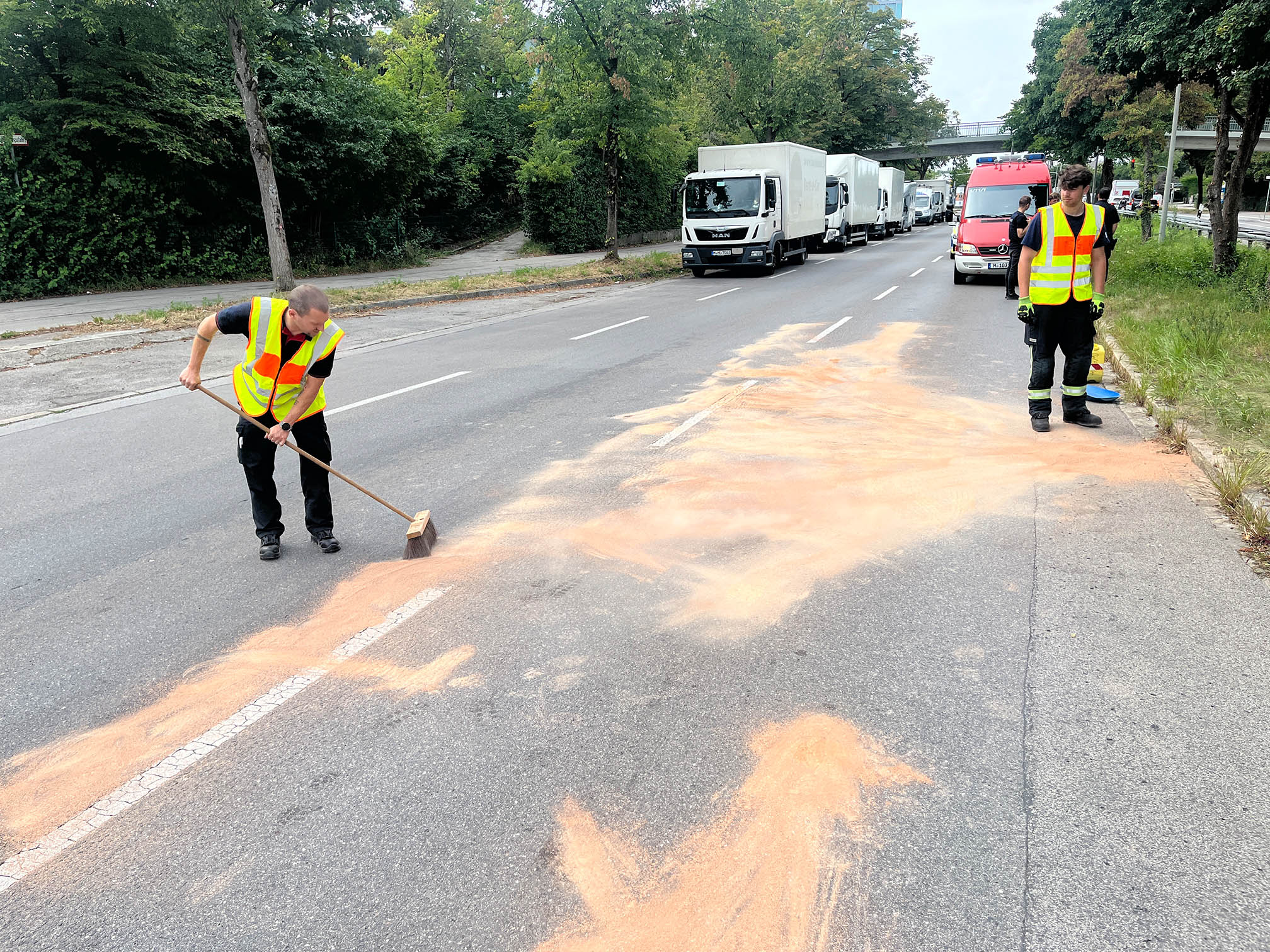 Die Polizei forderte die Feuerwehr Haar in die B304 zu ausgelaufenen Betriebsmitteln an.