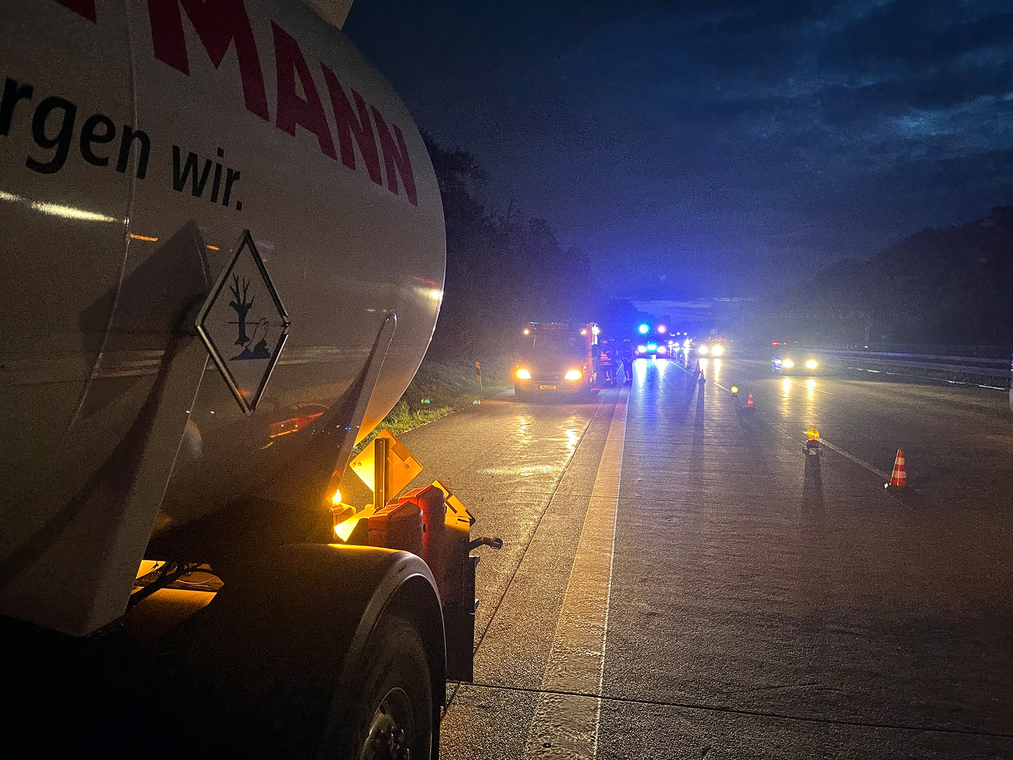 Die Autobahnpolizei wollte die Sprerrung der rechten der vier Fahrspuren aufrecht erhalten, bis das Fahrzeug von der Autobahn verbracht war. In Absprache mit der Polizei konnte die Einsatzstelle schließlich der Polizei übergeben werden und die Feuerwehr rückte ab.