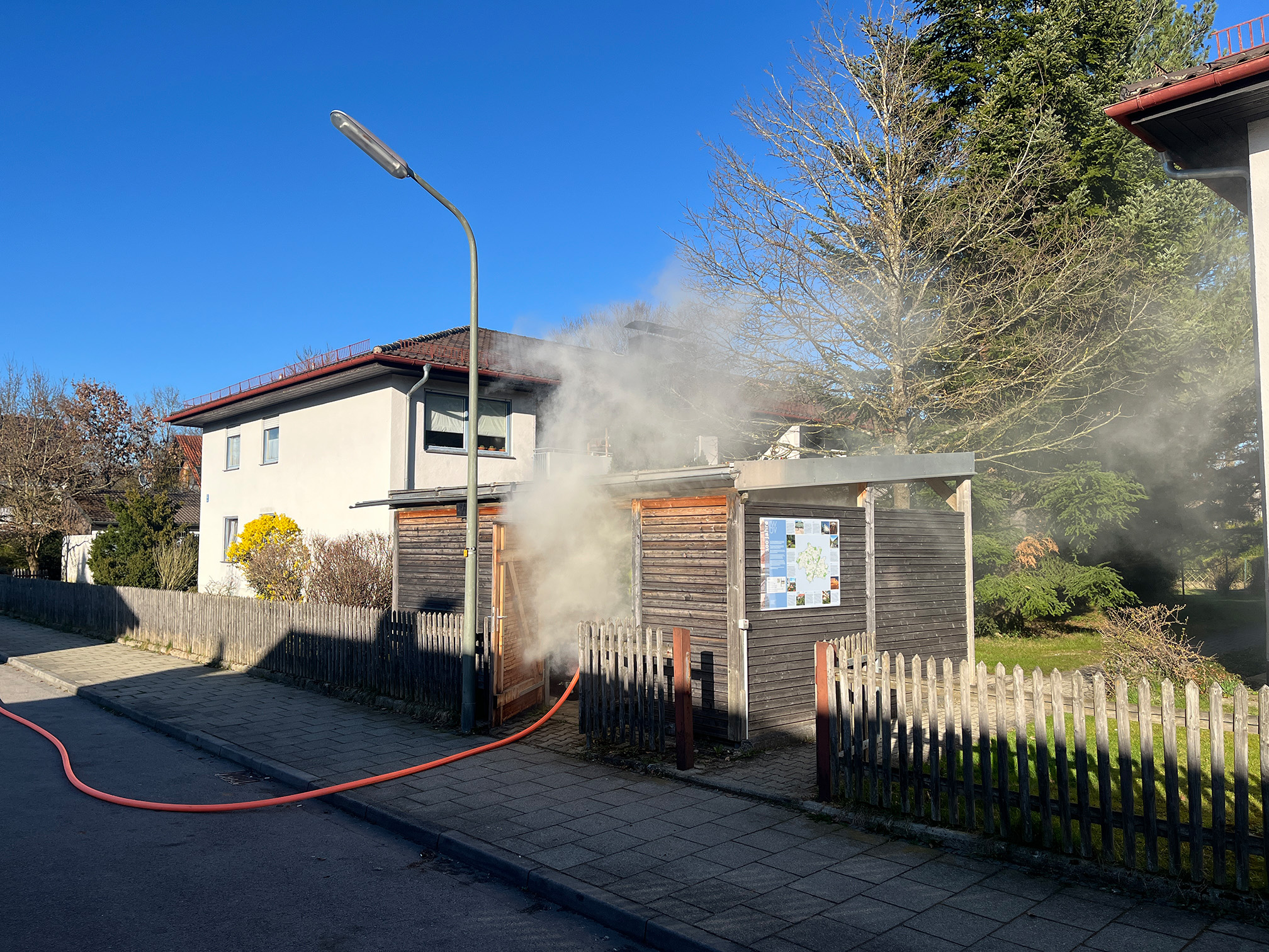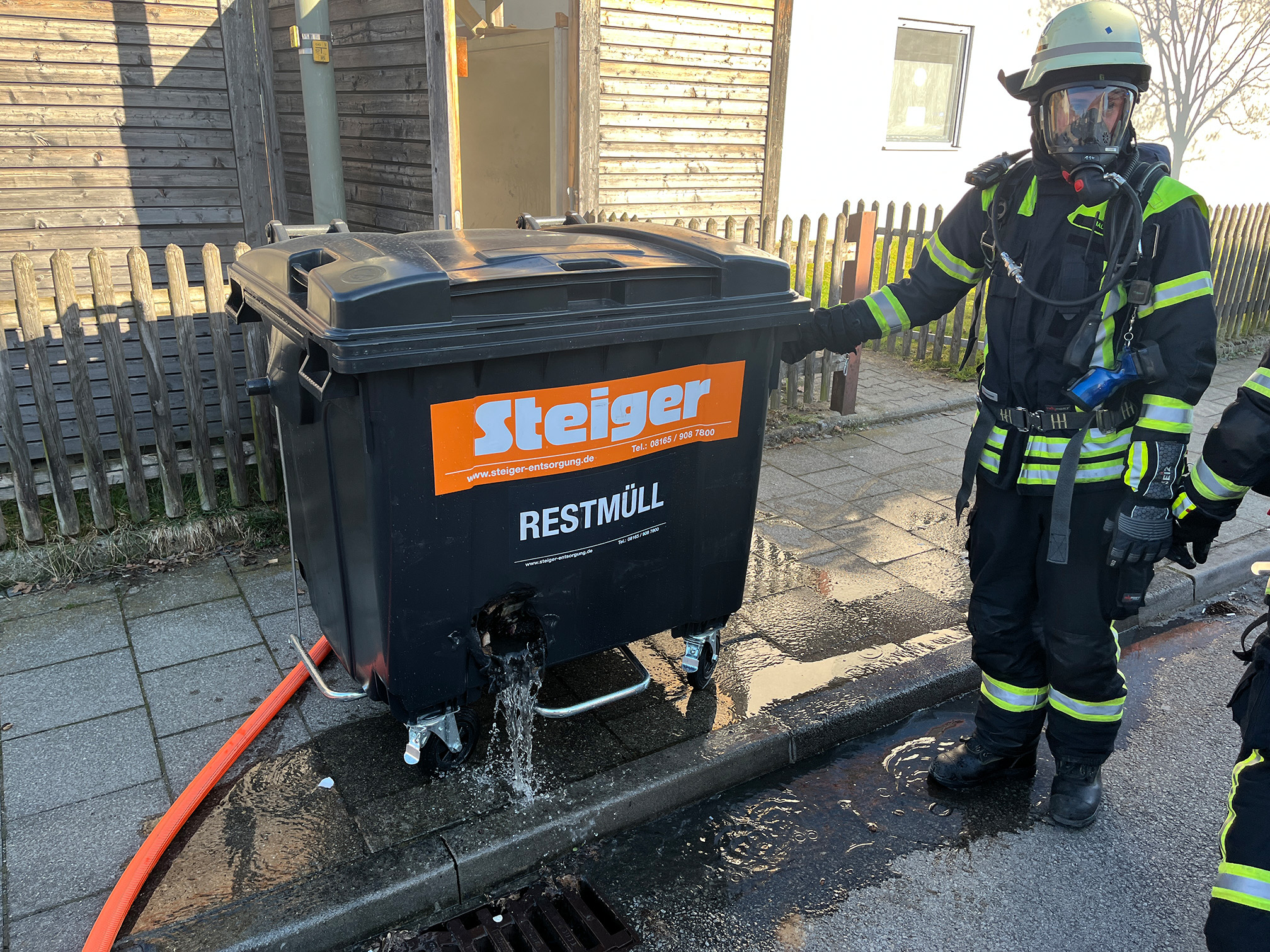 In einem Mülltonnenhaus war eine Großraum-Restmülltonne in Brand geraten. Ein Trupp unter schwerem Atmenschutz löschte die Tonne ab. Anschließend wurde sie mit einer Wärmebildkamera auf Glutnester kontrolliert. Durch die starke Rauchenwicklung musste das Tonnenhaus mit einem Akkulüfter belüftet werden. Im Anschluss konnte die Einsatzstelle an die Polizei übergeben werden und die Einsatzkräfte der Feuerwehr Haar rückten wieder ab.