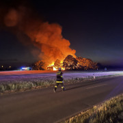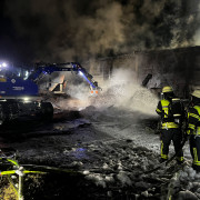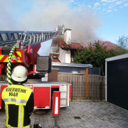 Die Feuerwehr Haar wurde zusammen mit weiteren Feuerwehren aus Heimstetten, Kirchheim, Aschheim, sowie dem Technische Hilfswerk (THW) und dem ABC-Zug des Landkreises München zu einem Lagerhallenbrand in der Emeranstraße nach Feldkirchen alarmiert.Bereits auf der Anfahrt zeigte sich eine starke Rauchentwicklung und eine hohe Rauchsäule wies den Weg. Eine Halle, in der eine Sortieranlage eines Recyclingbetriebs, untergebracht war stand in Brand.Vor Ort übernahmen die Feuerwehr Haar zusammen mit der Feuerwehr Heimstetten einen Einsatzabschnitt, bei dem über die Drehleiter ein Wenderohreinsatz vorgenommen wurde und eine Wasserversorgung aufgebaut wurde. Dabei wurde die Außenhaut des Gebäudes teilweise geöffnet um ein effektive Brandbekämpfung im Inneren durchführen zu können. Parallel versuchten mehrere Trupps sich Zugang zu der Halle zu verschaffen um einen Innenangriff vorzubereiten.Zur Luftüberwachung war zeitweilig auch ein Polizeihubschrauber im Einsatz. Um 20.07 Uhr war das Feuer endlich unter Kontrolle, um 20.30 Uhr konnte "Feuer aus" gemeldet werden. Es wurden anschließend noch kleinere Glutnester aufgespürt und gelöscht.Die Feuerwehre Haar löste sich aus dem Einsatz und konnte wieder einrücken.