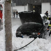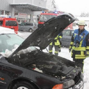 Die Feuerwehr Haar wurde zu einem brennenden PKW in den Jagdfeldring gerufen. Bei der Ankunft der Feuerwehr war am Fahrzeug ein Brand im Motorraum zu erkennen. Das Fahrzeug selbst stand direkt an der Rückwand eines Ladengeschäfts. Zwei Trupps unter schwerem Atemschutz begannen sofort mit den Löscharbeiten. Das Öffnen der Motorhaube gestaltete sich als schwierig, so dass mit einem Trennschleifer die Haube zerschnitten werden musste, um an den Brandherd zu gelangen. Das Feuer konnte vor dem Übergreifen auf den Innenraum gelöscht werden, aufgrund der Hitzeentwicklung wurde aber auch der Innenraum stark in Mitleidenschaft gezogen, sodass sogar der Fahrerairbag auslöste und Maßnahmen zur Kühlung ergriffen werden mussten. Nach Abklemmen der Batterie im Kofferraum wurde das Fahrzeug so schnell wie möglich umgesetzt, da sich in der Wand direkt dahinter die Ansaugöffnung der Lüftungsanlage des Ladengeschäfts befand. Aufgrund der starken Rauchentwicklung und der damit verbundenen Verrauchung der Lagerräume des Geschäfts musste der ABC-Zug München Land Messungen sowohl im Laden, als auch in den Lagerräumen im Keller des Gebäudes durchführen. Die Feuerwehr belüftete mit mehreren Lüftern das komplette Gebäude. Nach diesen Maßnahmen und der erneuten Kontrolle durch den ABC-Zug konnte das Gebäude an den Betreiber übergeben werden, der PKW wurde abgeschleppt und die Feuerwehr konnte wieder abrücken.