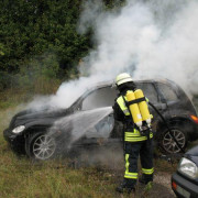 Aus unbekannter Ursache geriet am frühen Samstag-Nachmittag in Haar eine Wohnung in Brand. Nach einem lauten Knall drang starker Rauch aus der Küche und die Bewohnerin musste sich auf den Balkon retten.Die Feuerwehr Haar wurde um 13:33 Uhr alarmiert und rückte mit mehreren Fahrzeugen aus. Zwei Trupps mit schweren Atemschutz drangen in die inzwischen völlig verqualmte Wohnung ein und bekämpften das Feuer. Zugleich wurde die Bewohnerin mit einer Leiter über den Balkon gerettet.Der Brand konnte schnell mit einem C-Rohr abgelöscht werden und eine Ausbreitung wurde verhindert. Zum Schutz vor weiterer Verqualmung in dem Wohnhaus wurde an der Wohnungstüre ein so genannter mobiler Rauchabschluß angebracht, der eine Verrauchung des gesamten Treppenraumes verhinderte.Mit einer Wärmebildkamera wurde die Küche nach Glutnestern abgesucht und die Wohnung belüftet. Der Schaden an der Einrichtung ist erheblich. Zur Sicherheit mussten auch die übrigen Wohnungen im Haus kontrolliert werden, da sich der Rauch über die Lüftung ausgebreitet hat. Die Bewohnerin kam mit leichten Verletzungen davon, mehrere kleine Vögel sind aber leider in dem Rauch erstickt.31 Kräfte der Feuerwehr Haar waren fast drei Stunden mit den Lösch- und Aufräumungsarbeiten vor Ort beschäftigt.