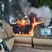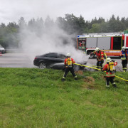Zusammen mit den Feuerwehren Grasbrunn und Vaterstetten wurde die Feuerwehr Haar auf A99 Fahrtrichtung Nürnberg alarmiert.Der LKW-Anhänger war bei Eintreffen der Feuerwehr bereits in Vollbrand, der Fahrer konnte zuvor allerdings das Zugfahrzeug abkoppeln und einige Meter Abstand gewinnen. Unter Atemschutz wurde mit den anderen Wehren ein Löschangriff von mehreren Seiten unternommen. Parallel wurde die Autobahn in diese Richtung komplett gesperrt. Die Feuerwehrkräfte zogen die Ladung aus Holzpaletten, Wein und Öl auseinander, um an die Brandherde im Inneren des Anhänger zu gelangen. Aufgrund des Umfangs wurde für weitere Maßnahmen das Technische Hilfswerk und aufgrund der Örtlichkeit zusätzlich die Feuerwehr Aschheim alarmiert. Die Autobahnmeisterei unterstützte bei der Absicherung der Einsatzstelle.Nach erfolgreichem Löscheinsatz konnte die Einsatzstelle an THW, Polizei und Autobahnmeisterei übergeben werden.