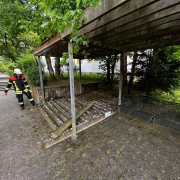 Die Feuerwehr Haar wurde mit dem Stichwort „Kran umgestürzt“ alarmiert, als Alarmadresse war das Katastrophenschutzzentrum angegeben.Es stellte sich heraus, dass ein Autokran von der Baustelle gegenüber der Feuerwehr über die B471 gestürzt war. Der Ausleger des Krans drückte dabei das Führerhaus eines geparkten LKW komplett ein. Zum Zeitpunkt des Unfalls befand sich zum Glück niemand im LKW, lediglich der Kranführer saß in seiner Kabine und kam mit leichten Verletzungen davon.Die ersteintreffenden Einsatzkräfte starteten sofort mit der Lageerkundung und leiteten erste Maßnahmen ein: Kontrolle auf weitere verletzte Personen, Erkundung auf auslaufende Betriebsflüssigkeiten an der Unfallstelle, Sicherstellen des Brandschutzes und dann natürlich die Absicherung der Einsatzstelle, die an der vielbefahrenen Bundesstraße weitere Tücken im einsetzenden Berufsverkehr mit sich bringt.Nachdem sich herausstellte, dass definitiv keine weiteren Personen beteiligt waren und aus dem Autokran kein Hydrauliköl auslief, konnte mit den Sicherungsmaßnahmen begonnen werden. Der Dieseltank musste am Einfüllstutzen abgedichtet werden und wurde laufend kontrolliert. Weitere Einsatzkräfte kümmerten sich um Umleitungen an der B304 und der Leibstraße, bis die Polizei dies übernehmen konnte.An der Einsatzstelle liefen die Planungen für die Bergung an. Der Fachberater des THW, zusammen mit einem Fachmann der umliegenden Bergeunternehmen, plante die weiteren Schritte. Es wurde schnell klar, dass der Ausleger vom Autokran getrennt werden musste und erst anschließend wieder aufgerichtet werden konnte. Hierfür wurde schweres Gerät benötigt und ein 100t Kran angefordert. Ein weiterer 50t Kran war noch an der Baustelle verfügbar, der ebenfalls herangezogen werden konnte.Letztendlich trennten Fachkräfte des THW unter Anleitung eines Technikers des Kranherstellers den Ausleger vom Rest des Krans mit einem Schweißbrenner. Da hierbei eine nicht unerhebliche Menge an Hydrauliköl frei wurde, kümmerte sich die Feuerwehr Haar um die Aufnahme der Flüssigkeit. Zusätzlich wurde der Brandschutz von zwei Seiten sicher gestellt. Während der Trennarbeiten entzündete sich das Öl mehrmals und musste abgelöscht werden. Mit den anwesenden Kränen konnten sowohl der Ausleger entfernt und der umgestürzte Kran aufgerichtet werden, als auch der zerquetschte LKW auf einen Tieflader verladen werden.Nach dem Reinigen der Unfallstelle und der Fahrbahn gab der Straßenmeister die B471 gegen Mitternacht wieder für den Verkehr frei.