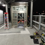Die Feuerwehr Haar wurde zum Aufzug am S-Bahnhof Haar alarmiert, dort wurde eine steckengebliebene Person gemeldet.Vor Ort mussten die Einsatzkräfte feststellen, dass die Kabine des Aufzugs an der Südseite zwischen den Stockwerken stecken geblieben war. Eine Person mit ihrem Fahrrad war in ihr gefangen. Alle Versuche, die Kabine mit den Noteinrichtungen zu verfahren, blieben erfolglos. Die Elektronik weigerte sich, die Kabine zu bewegen. Zum Glück war die gefangene Person wohl auf und recht entspannt.Letzendlich musste die Feuerwehr schwere Geschütze auffahren und die Kabine mit einem Mehrzweckzug anheben, um eine Ausstiegsöffnung für die Person zu schaffen. Diese Maßnahme kostete eine Menge Zeit und der Aufzug wird in der Folge wohl eine längere Zeit nicht nutzbar seinIn eigener Sache: Der Aufzug ist erst seit zwei Wochen wieder in Betrieb, nachdem er auch in der Vergangenheit öfter Probleme bereitet hatte und wurde im Zuge der Umbaumaßnahmen am S-Bahnhof umgebaut - leider anscheinend nur mit mäßigem Erfolg.