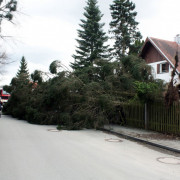 Während der Arbeiten an einem anderen Einsatz in der Dianastraße fanden die Einsatzkräfte einen weiteren Baum in Schieflage vor, der abgetragen werden musste. Noch bevor die Feuerwehr beginnen konnte, stürzte der Baum um, so dass außer einer Absicherung mit Absperrband kein weiteres Eingreifen erforderlich war.