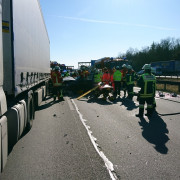 Die Feuerwehr Haar wurde zu einem Verkehrsunfall zwischen einem PKW und einem Gefahrgut-LKW, mit eingeklemmter Person, auf die Autobahn 99, Fahrtrichtung Nürnberg, alarmiert.Der Fahrer eines Kastenwagens musste einem vor ihm fahrenden, bremsenden LKW ausweichen. Bei dem Versuch kollidierten beide Fahrzeuge und der PKW schleuderte. Er kam zwischen Leitplanke und dem LKW zum stehen. Der Fahrer wurde dabei eingeklemmt.Die Einsatzkräfte leiteten umgehend, in Absprache mit dem ebenfalls alarmierten Rettungsdienst, die technische Rettung ein und befreiten den Fahrer aus seinem Fahrzeug. Während dessen wurde der Brandschutz sichergestellt und Maßnahmen zur Verkehrssicherung eingeleitet. Nach der Übergabe des Patienten an den Rettungsdienst und dem Binden von ausgelaufenen Betriebsstoffen war der Einsatz für die Feuerwehr beendet.