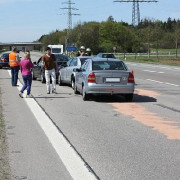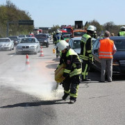 Die Feuerwehr Haar wurde auf die A99 in Fahrtrichtung Salzburg zu einem Verkehrsunfall alarmiert. Durch die unklaren Angaben musste von einer eingeklemmten Person ausgegangen werden.Ein Eintreffen an der Einsatzstelle stellte sich heraus, dass es sich lediglich um einen leichten Auffahrunfall handelte, bei dem eine Person leicht verletzt wurde. Der Rettungsdienst übernahm zusammen mit dem Feuerwehrarzt die Erstversorgung, die Feuerwehr sicherte die Einsatzstelle ab.Ein Teil der Einsatzkräfte musste noch während der Arbeiten aus dem Einsatz abrücken, da in Haar ein Zimmerbrand gemeldet wurde.