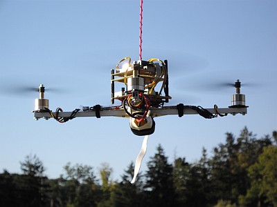 Aus diesem Grund startet die Feuerwehr Haar mit Unterstützung eines Informatik-Lehrstuhls der TU-München einen Feldversuch mit diesem Quadrocopter (UAVP-NG Hardware 0.22-mini), der mit einer Reihe an Sensoren ausgestattet ist und autonom Gebiete erkunden kann: