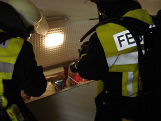 Abschließend musste aufgrund des schädlichen Einflusses des Schwarzgeldes eine Person, die dem Brandherd zu nahe gekommen war, gerettet werden. Dies war nur unter speziellen Schutzanzügen möglich.