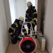 Die Feuerwehr Haar wurde zu einer brennenden Gartenhütte in die Schniederhofstraße nach Gronsdorf alarmiert.Bis zum Eintreffen der Einsatzkräfte hatte sich das Feuer bereits auf das Dach eines Mehrfamiliengebäudes ausgebreitet. Die Einsatzkräfte leitete umgehend einen Außenangriff mit einem C-Rohr ein und brachten die Drehleiter in Stellung, um das Feuer von oben zu bekämpfen. Die ebenfalls alarmierte Feuerwehr Feldkirchen unterstütze die Einsatzkräfte aus Haar durch einen Innenangriff unter Atemschutz. Das Feuer konnte schnell unter Kontrolle gebracht werden, aber da die Dachhaut geöffnet werden musste, um an alle Glutnester zu kommen, dauerte der Einsatz einige Zeit länger. Mit Hilfe der Wärmebildkamera wurden alle Glutnester gefunden und abgelöscht. Parallel wurde die Wohnung durch Überdruck belüftet um diese rauchfrei zu bekommen. Nach knapp vier Stunden war der Einsatz der Feuerwehren beendet.