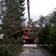 Die Polizei alarmierte die Feuerwehr Haar nach Ottendichl in die Feldkirchenerstraße. Dort hatten sich Dachziegel gelockert, die von der Feuerwehr entfernt werden mussten. Während der Arbeiten musste die B471 komplett gesperrt werden, die Reparatur übernimmt eine Fachfirma.