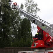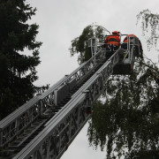 Die Feuerwehr Haar wurde zu einem Verkehrsunfall in die Annelies-Kupper-Allee alarmiert.Dort stieß ein Fahrzeug am Ahrntaler Platz gegen den "Blauen Baum" aus Metall, der dort als Kunstwerk auf dem Platz seit 2009 aufgestellt war. Der Fahrer wurde dabei verletzt und konnte sich nicht selber aus dem Fahrzeug befreien. Beim Eintreffen der ersten Einsatzkräfte war er von Zeugen des Unfalls bereits aus dem Fahrzeug befreit worden und wurde betreut. Die Feuerwehr Haar übernahm zusammen mit dem Rettungsdienst sofort die Erstversorgung und transportierte die Besatzung des Rettungshubschraubers Christoph 1 vom Landeplatz zur Unfallstelle. Zur weiteren Behandlung musste der Verletzte in eine Münchener Klinik geflogen werden.Durch den Aufprall wurde das Kunstwerk, das an die Partnergemeinde im Ahrntal erinnert, stark beschädigt und musste sicherheitshalber umgelegt werden. Die Feuerwehr Haar sicherte das Objekt mit der Drehleiter und konnte es mit Hilfe eines Krans sicher zu Boden bringen. Die Arbeiten an der Unfallstelle dauerten rund drei Stunden an.