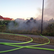 Die Feuerwehr Haar wurde zur Unterstützung beim Brand eines Traktors mit Strohballenpresse nach Vaterstetten alarmiert.Ein Landwirt bemerkte, dass die angehängte Strohballenpresse an seinem Traktor in Brand geraten war. So schnell wie möglich versuchte er das brennende Gerät vom abgeernteten, sehr trockenen Stoppelfeld zu bringen, damit das Feld nicht in Brand geraten konnte. Er kuppelte die Maschine neben der Straße ab und brachte den Traktor in Sicherheit.Die Feuerwehr Vaterstetten löschte mit mehreren Trupps unter schwerem Atemschutz die Maschine ab. Die zur Hilfe gerufene Feuerwehr Haar kontrollierte den Traktor und entfernte mit dem Schnellangriff glimmendes Stroh vom Traktor.Parallel dazu unterstützte das Tanklöschfahrzeug TLF4000 bei der Kontrolle des Stoppelfelds, von dem der Traktor gekommen war; dort war bereits das Feuer aus und kein weiteres Eingreifen erforderlich.