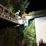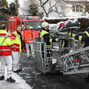 Der Rettungsdienst forderte die Drehleiter der Feuerwehr Haar in die Rondellstraße nach. Dort musste eine ältere Dame aus dem ersten Obergeschoss liegend zu Boden gebracht werden, das enge Treppenhaus ließ das nicht zu. Auf der Krankentragenhalterung am Korb konnte die Person sicher mit der Drehleiter zu Boden gebracht werden.