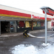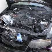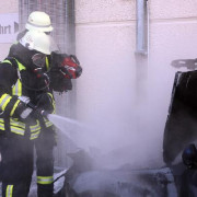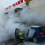 Die Feuerwehr Haar wurde zu einem brennenden PKW in den Jagdfeldring gerufen. Bei der Ankunft der Feuerwehr war am Fahrzeug ein Brand im Motorraum zu erkennen. Das Fahrzeug selbst stand direkt an der Rückwand eines Ladengeschäfts. Zwei Trupps unter schwerem Atemschutz begannen sofort mit den Löscharbeiten. Das Öffnen der Motorhaube gestaltete sich als schwierig, so dass mit einem Trennschleifer die Haube zerschnitten werden musste, um an den Brandherd zu gelangen. Das Feuer konnte vor dem Übergreifen auf den Innenraum gelöscht werden, aufgrund der Hitzeentwicklung wurde aber auch der Innenraum stark in Mitleidenschaft gezogen, sodass sogar der Fahrerairbag auslöste und Maßnahmen zur Kühlung ergriffen werden mussten. Nach Abklemmen der Batterie im Kofferraum wurde das Fahrzeug so schnell wie möglich umgesetzt, da sich in der Wand direkt dahinter die Ansaugöffnung der Lüftungsanlage des Ladengeschäfts befand. Aufgrund der starken Rauchentwicklung und der damit verbundenen Verrauchung der Lagerräume des Geschäfts musste der ABC-Zug München Land Messungen sowohl im Laden, als auch in den Lagerräumen im Keller des Gebäudes durchführen. Die Feuerwehr belüftete mit mehreren Lüftern das komplette Gebäude. Nach diesen Maßnahmen und der erneuten Kontrolle durch den ABC-Zug konnte das Gebäude an den Betreiber übergeben werden, der PKW wurde abgeschleppt und die Feuerwehr konnte wieder abrücken.