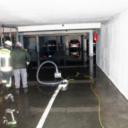 Mit mehreren Pumpen und E-Saugern wurde anschließend aus dem Keller und der Tiefgarage das Wasser abgepumpt. Auch der Schacht des Aufzuges war voll Wasser gelaufen und musste ausgepumpt werden, zur Sicherheit wurde der Aufzug außer Betrieb genommen.Als Ursache für den massiven Wasseraustritt stellte sich ein Defekt an einem Rückspülfilter im Wasserübergaberaum heraus.