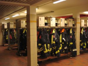 In der Feuerwache Haar ist die Einsatzkleidung der Aktiven Mannschaft nicht in der Fahrzeughalle, sondern in einer separaten Umkleide gelagert. Hier steht jedem Mitglied der FF Haar und der WF IAK ein eigener Spind zur Verfügung. Diese bestehen aus einem Helmfach, einem abschliessbaren Fach für persönliche Gegenstände sowie diversen Haken zur Aufnahme der Einsatzkleidung. Über dem Durchgang zur Fahrzeughalle befindet sich eine Fahrzeuganzeige, über die die zu besetzenden oder bereits ausgerückten Fahrzeuge angezeigt werden können.