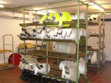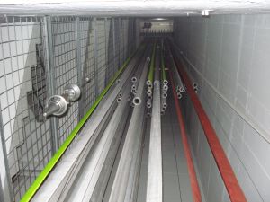 Nach jedem Einsatz und jeder Übung müssen die benutzten Schläuche gewaschen und geprüft werden. Dazu steht den Gerätewarten im Keller der Feuerwache eine Schlauch-pflegestraße zur Verfügung. Die verschmutzen Schläche werden dort gewaschen und danach mittels Druckprobe geprüft. Nach erfolgter Prüfung werden dann die Schläuche im Schlauchturm zum trocken aufgehängt. Die einsatzbereiten Schläuche lagern im angrenzenden Schlauchlager.