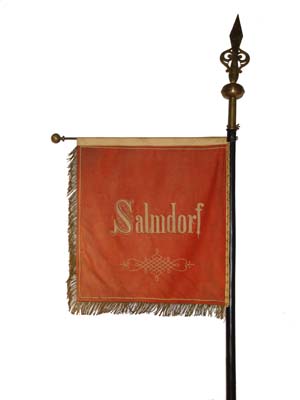 Die Standarte mit der Aufschrift "Salmdorf" diente der Freiwilligen Feuerwehr Haar bis zum 23. Mai 1954 als Vereinsfahne. Beschafft wurde sie bereits im Jahr 1884 vom damaligen Kommandanten Kinding. Ursprünglich wurde die Standarte als so genannte Brand-Direktionsfahne, mit der bei Einsätzen und Übungen eine Befehlsstelle gekennzeichnet wurde, eingesetzt. Die Aufschrift "Salmdorf" hatte bis zum ersten Januar 1936 auch ihre Richtigkeit, denn bis zu diesem Zeitpunkt lautete der Name der Feuerwehr Haar "Freiwillige Feuerwehr Salmdorf". Die mittlerweile über 120 Jahre alte Standarte steht heute in der Eingangshalle der Feuerwache.